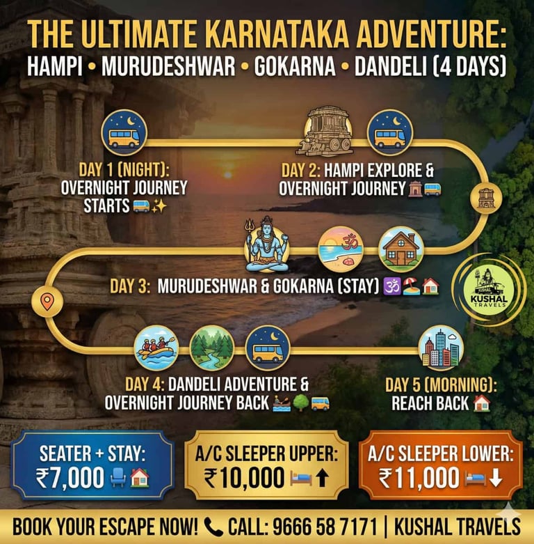I recently went on a South India temple trip with Kushal Travels, and it was an amazing experience. The itinerary was well-planned, and we covered all major temples like Tirupati, Rameshwaram, Kanyakumari, Arunachalam, and many more without any rush. The vehicle was clean and comfortable, and the driver was polite and experienced. They even accommodated a few custom requests during the journey. I highly recommend Kushal Travels for spiritual tours and family trips. Thank you for making the trip memorable!