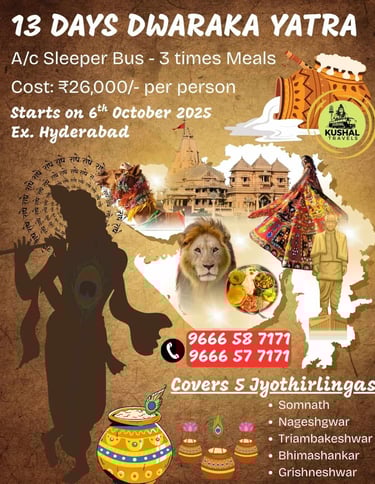 At Kushal Travels, we turn every journey into a soulful experience. Based in Siddipet & Hyderabad, we specialize in organizing devotional road trips and pilgrimage tours across India β blending spiritual exploration with modern comfort.